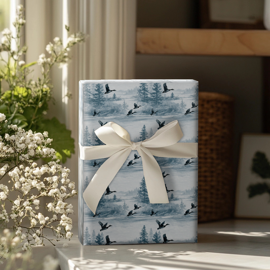 Birch and Bootprints Wrapping Paper