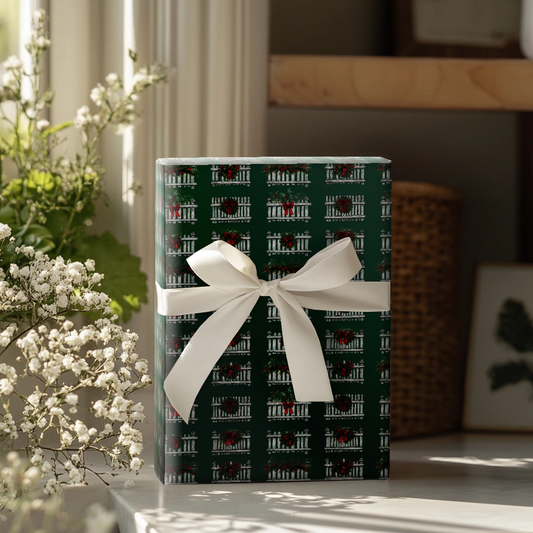 White Picket Christmas Wrapping Paper