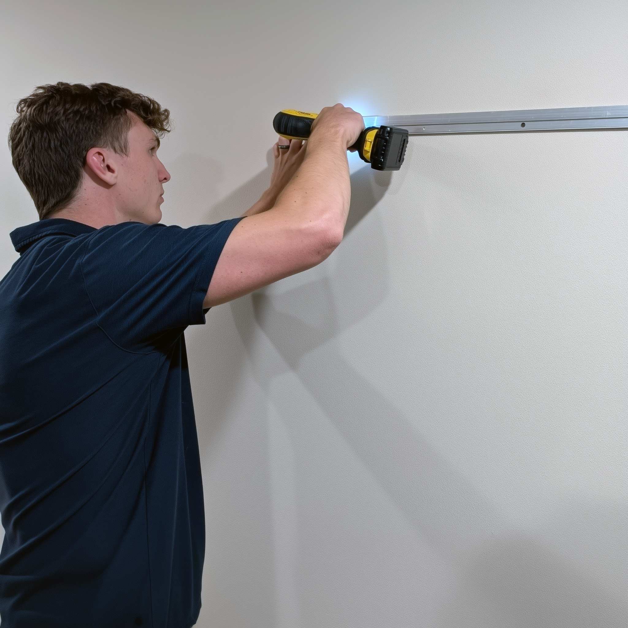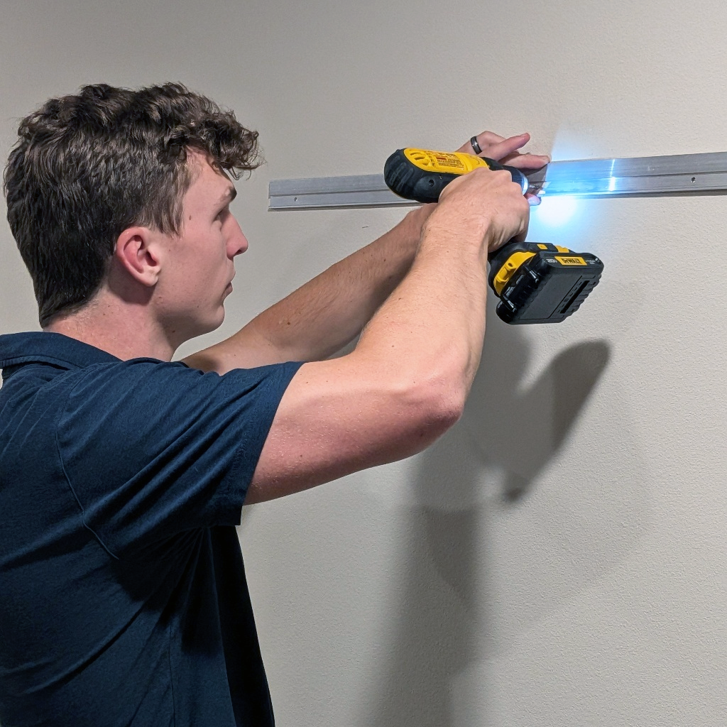 Drill pilot holes into the studs and secure the French Cleat using the included screws. Avoid using drywall anchors unless necessary.