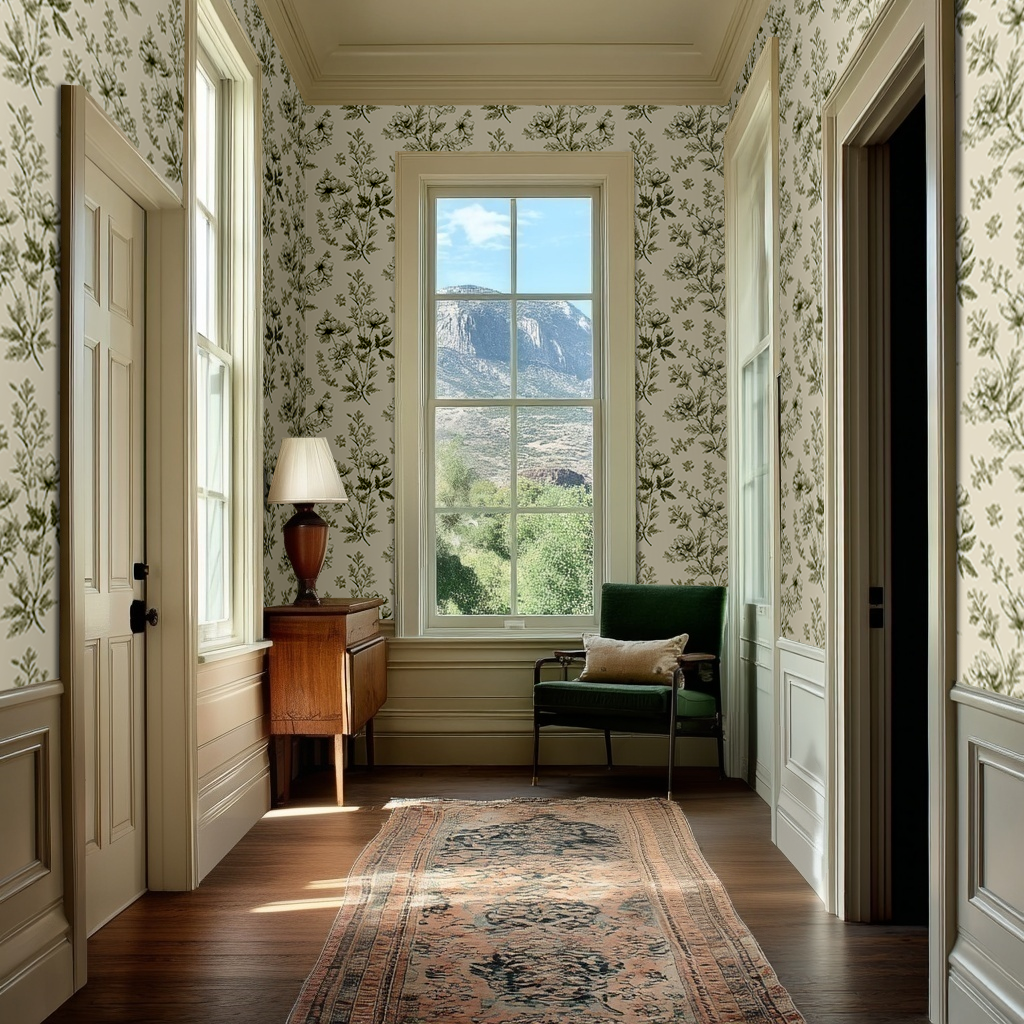 Aldrich brings timeless elegance to your walls, featuring delicate hand-drawn florals arranged with graceful balance. The fine line work and soft, natural palette create a refined, vintage-inspired feel reminiscent of botanical etchings. Warm, earthy tones add to its inviting appeal, making it an excellent choice for farmhouse, cottage, or traditional interiors.