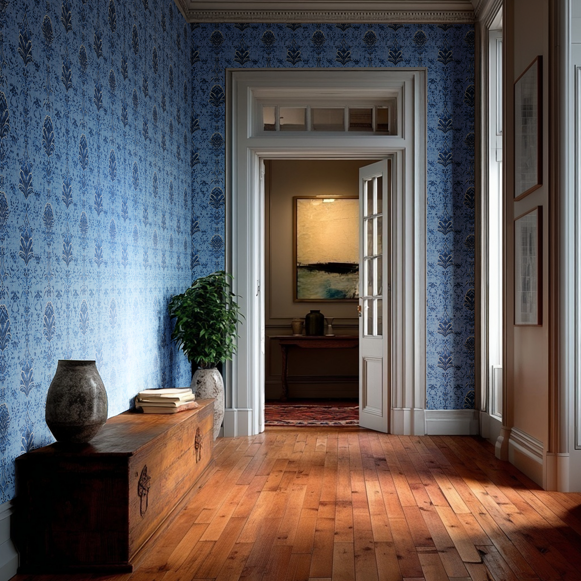 Barclay is a tonal damask wallpaper that blends classic patterning with a modern, textural finish. Shades of indigo and slate create subtle dimension, evoking the look of woven fabric. Refined yet approachable, Barclay brings quiet luxury and timeless depth to traditional and transitional interiors alike.
