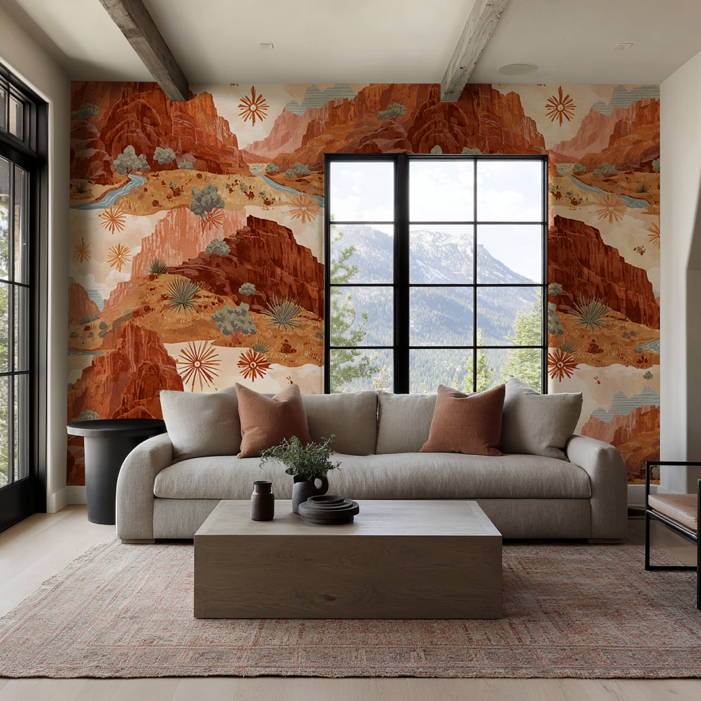 Bring the majesty of the wilderness into your home with Bright Angel Ridge Wallpaper. Inspired by the stunning vistas of America's most iconic national parks, this design captures the warm, vibrant hues of orange-tinted mountain landscapes at golden hour. Perfect for creating a focal point in any room, this wallpaper transforms ordinary walls into a window to nature's grandeur. Whether you're drawn to outdoor adventure or simply crave the calming presence of mountain scenery, this striking pattern delivers both visual impact and timeless appeal.