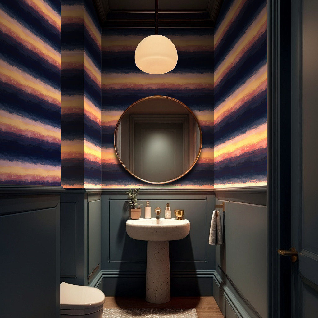 Cavendish Wallpaper brings bold character to any room with its striking thick stripe pattern in cheerful yellow, soft pink, and classic navy. Perfect for creating a western-inspired accent wall or refreshing an entire space, this versatile design combines timeless appeal with contemporary style. The balanced color palette works beautifully in bedrooms, living areas, or creative spaces, adding depth and visual interest without overwhelming your décor. Transform your walls with wallpaper that makes a confident statement.