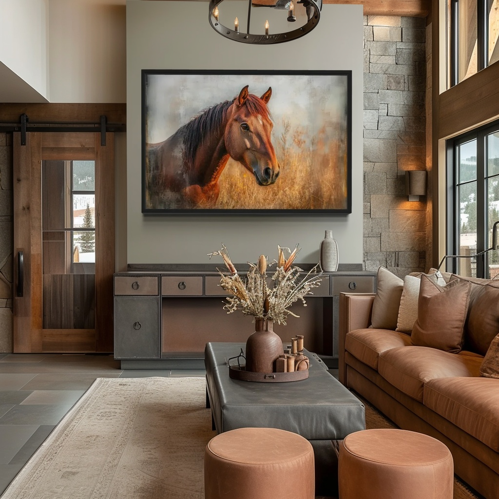 The Colter Art piece captures the spirit and beauty of a majestic horse in a rustic, golden landscape. With warm, earthy tones and rich details, Colter evokes a sense of freedom and grace, embodying the untamed charm of the countryside. Perfect for adding a touch of Western allure to any space, this artwork celebrates the noble presence of one of nature’s most cherished companions.
