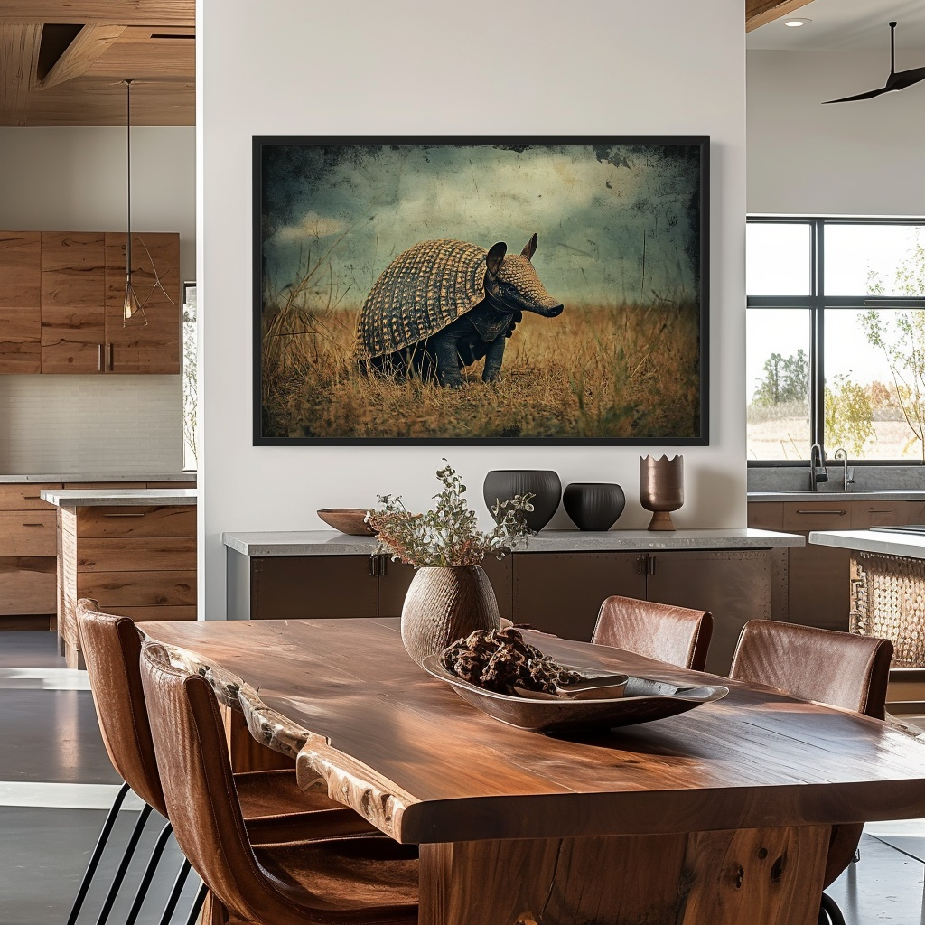 The Etta Art piece captures the charm and resilience of the armadillo in a beautifully textured, rustic setting. With rich earth tones and a vintage-inspired finish, Etta evokes a sense of the wild and untamed. Perfect for adding character and a touch of whimsy to any space, this artwork celebrates the unique beauty of nature’s lesser-seen creatures, bringing warmth and personality to your decor.