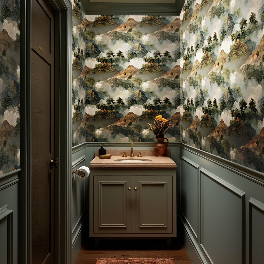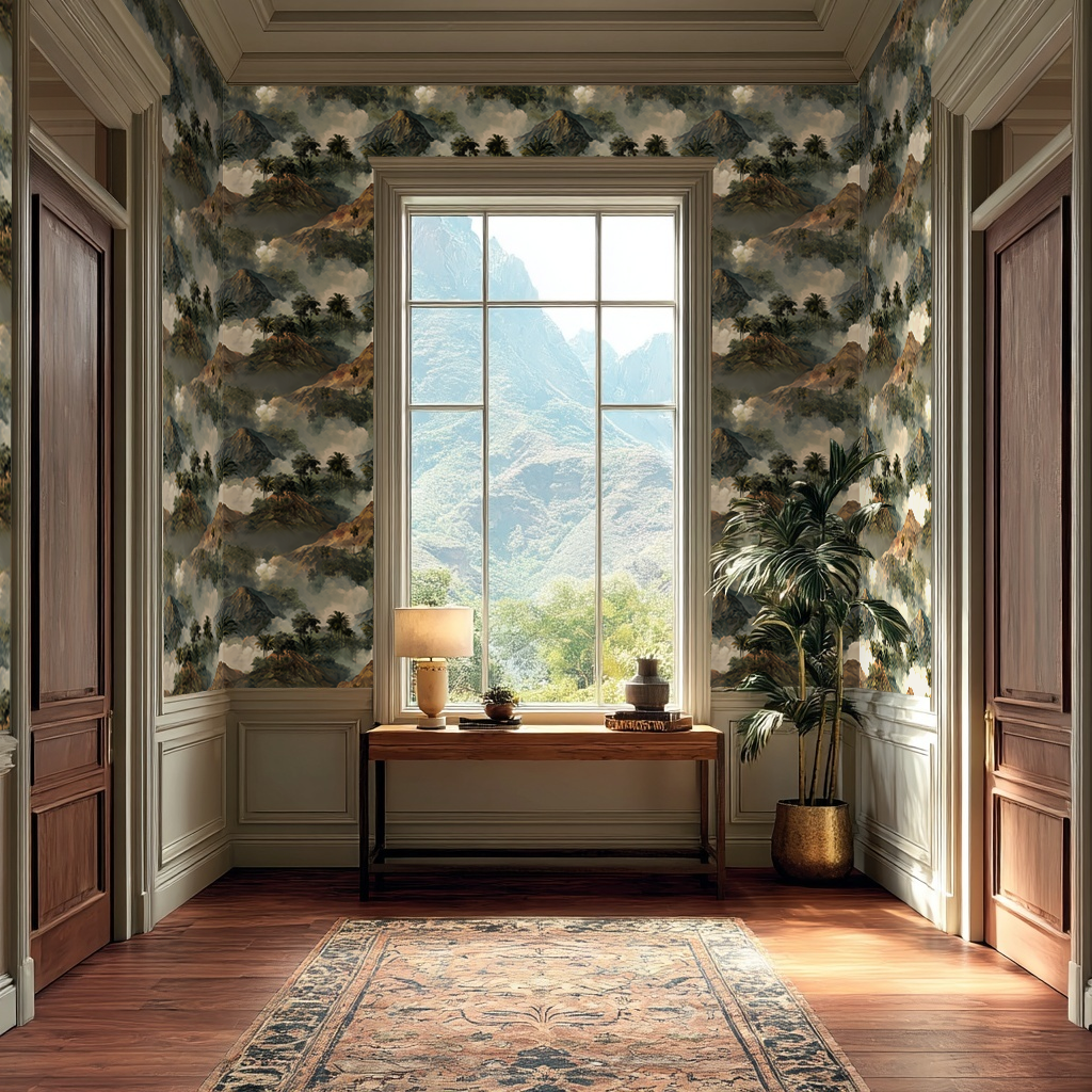 Galindo Wallpaper brings the raw beauty of volcanic landscapes into your home. This striking design features warm earth tones—rich browns and burnt oranges—layered with lush tropical greens that evoke misty mountain vistas. The rustic aesthetic captures the essence of untamed nature, creating depth and character on any wall. Perfect for spaces that crave warmth and organic sophistication, Galindo transforms ordinary rooms into immersive retreats inspired by the world's most dramatic natural wonders.