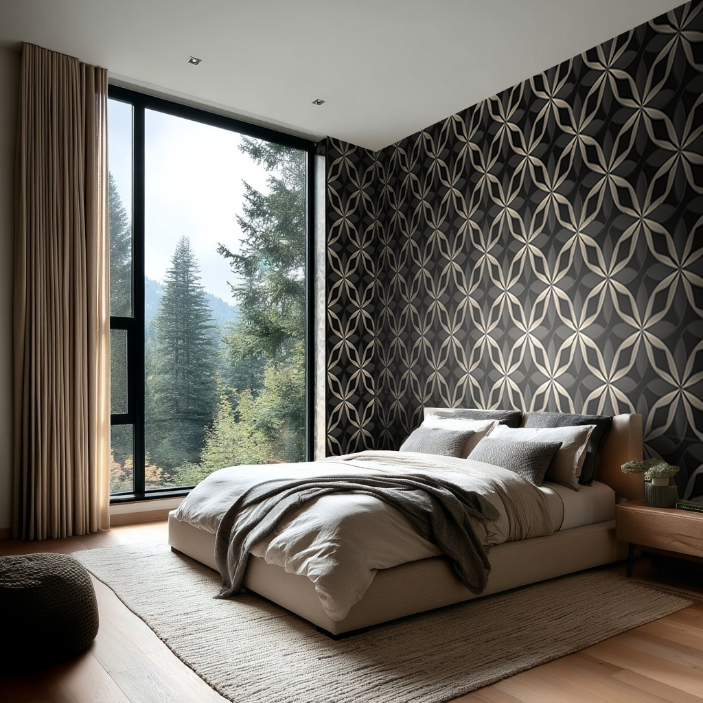 Elevate your space with Lockwood Wallpaper, a striking black geometric design that commands attention. Bold angular patterns create visual depth and modern sophistication, perfect for accent walls or entire rooms seeking contemporary flair. This elegant statement piece transforms ordinary walls into a gallery-worthy focal point, blending timeless geometry with contemporary style. Ideal for those who appreciate design-forward interiors that balance boldness with refinement.