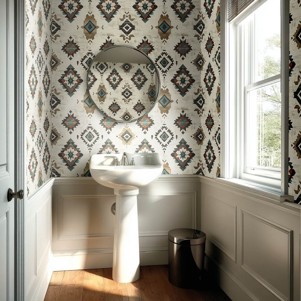 Transform your space with Marlowe Wallpaper, where geometric patterns meet western charm. This warm, earthy design blends rich browns and natural greens to create an inviting atmosphere that feels both sophisticated and comfortable. Perfect for adding character to any room, Marlowe brings a cozy, grounded aesthetic that celebrates timeless style with contemporary flair.