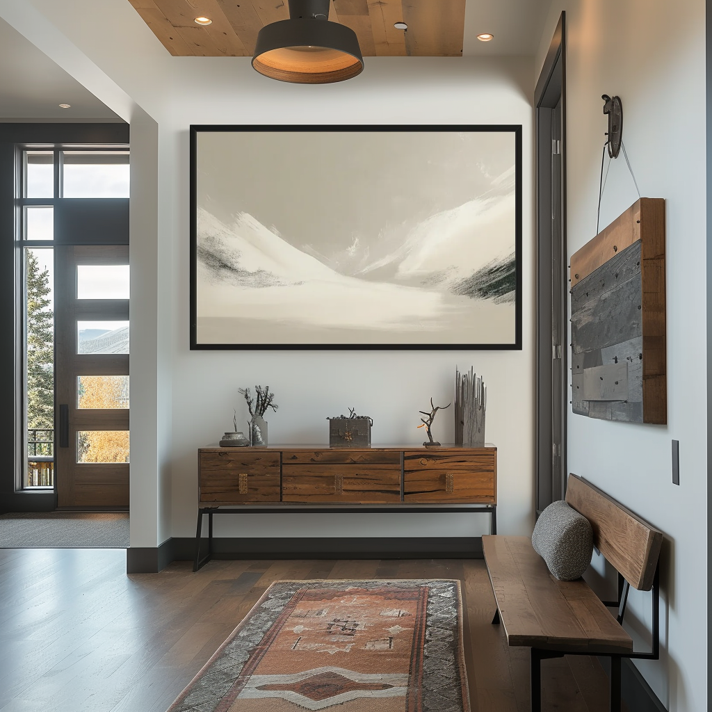 The Harlan Art piece captures minimalist elegance with its bold, abstract brushstrokes set against a dark canvas. With a subtle blend of light and shadow, Harlan brings a touch of mystery and sophistication to any space. Perfect for adding depth and modern style to your decor, this piece makes a statement without overpowering the room.