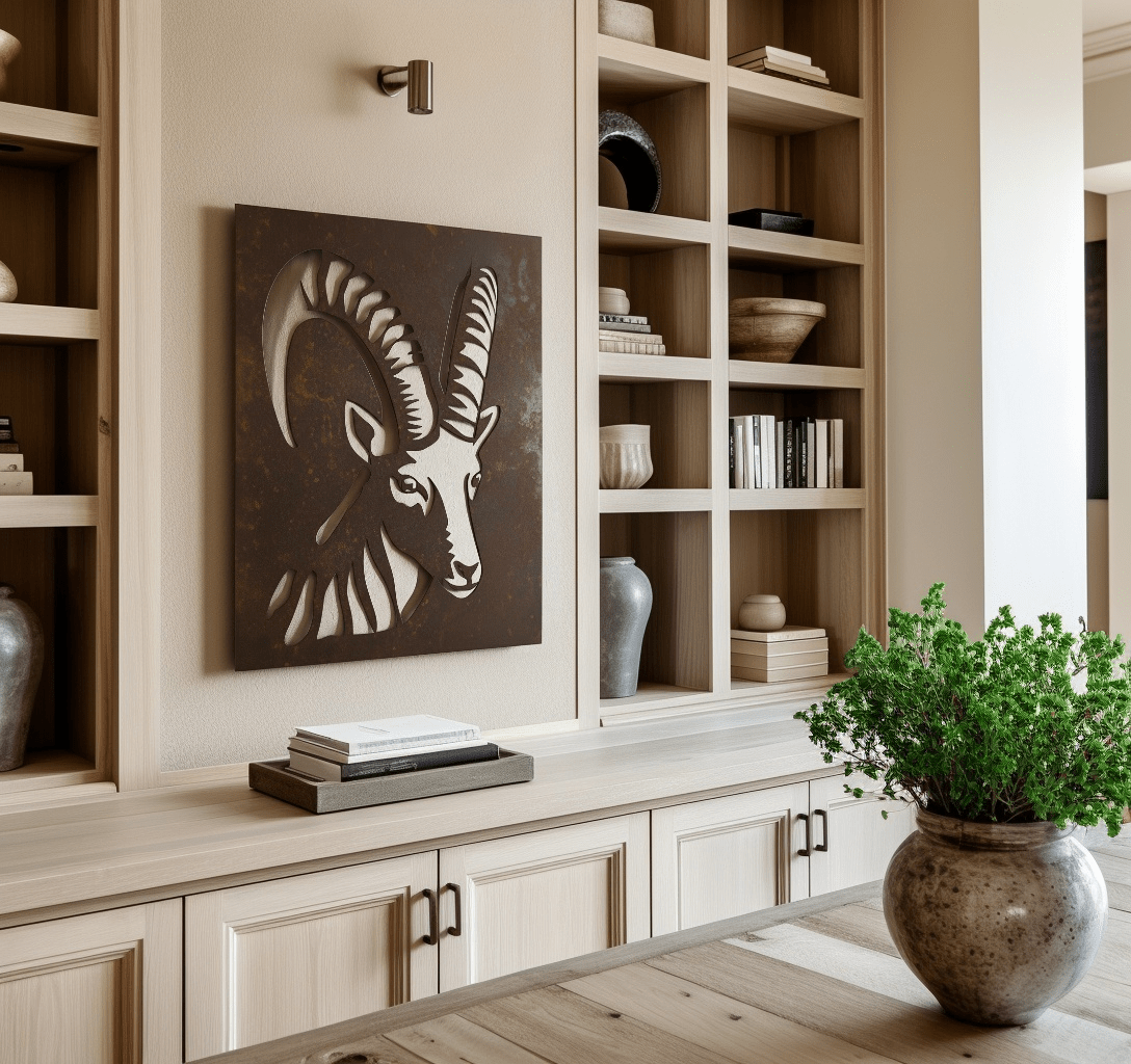 Each piece is crafted from solid 14-gauge American steel and precision cut for clean, lasting lines. A hand-applied patina gives every piece its own unique character. No two are exactly alike. Once finished, the piece is sealed for long-term durability.