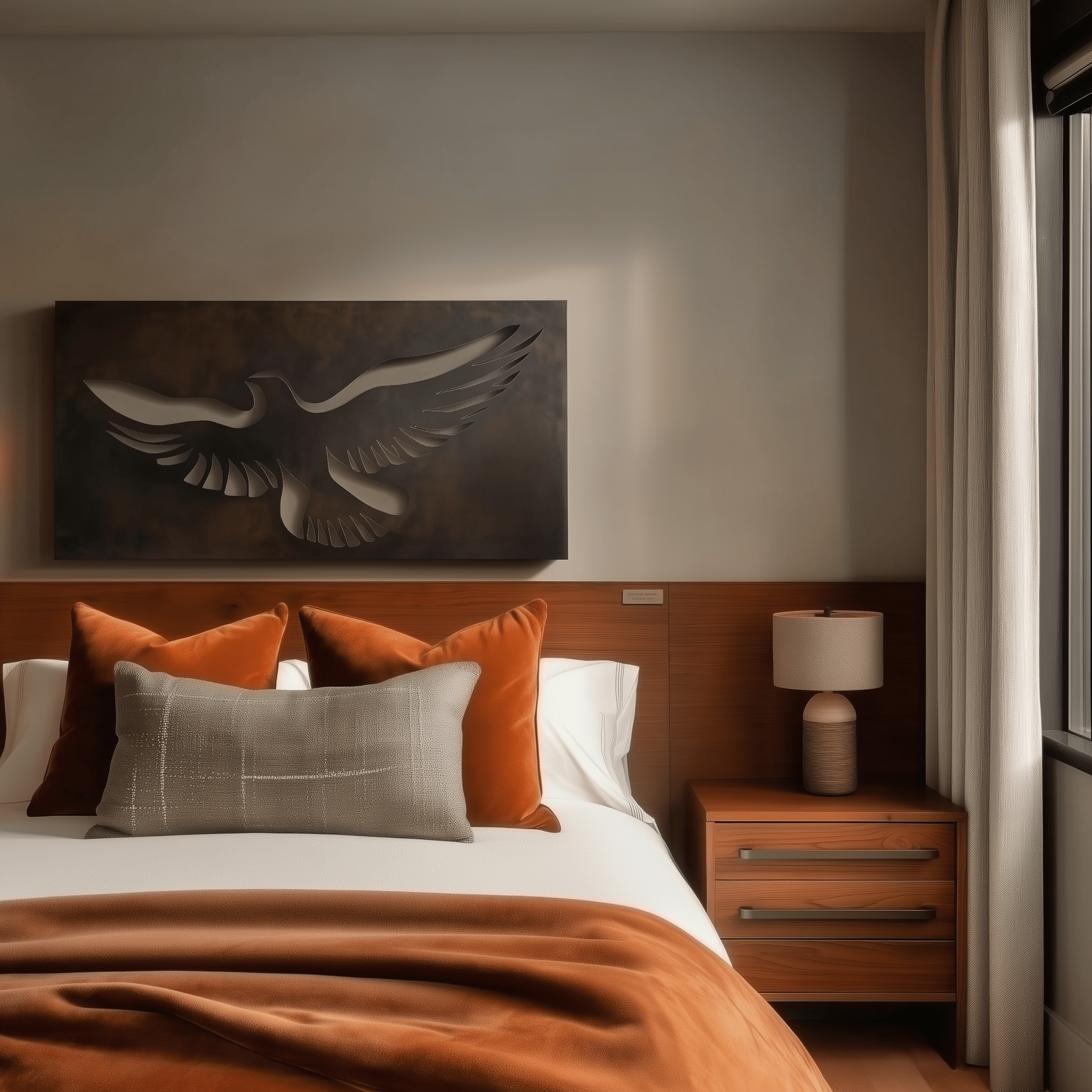 Each piece is crafted from solid 14-gauge American steel and precision cut for clean, lasting lines. A hand-applied patina gives every piece its own unique character. No two are exactly alike. Once finished, the piece is sealed for long-term durability.