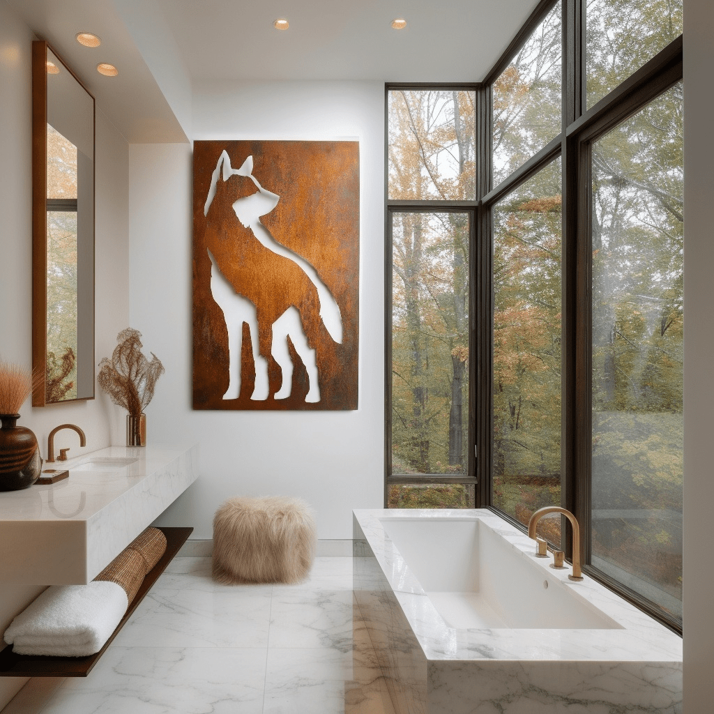 Each piece is crafted from solid 14-gauge American steel and precision cut for clean, lasting lines. A hand-applied patina gives every piece its own unique character. No two are exactly alike. Once finished, the piece is sealed for long-term durability.