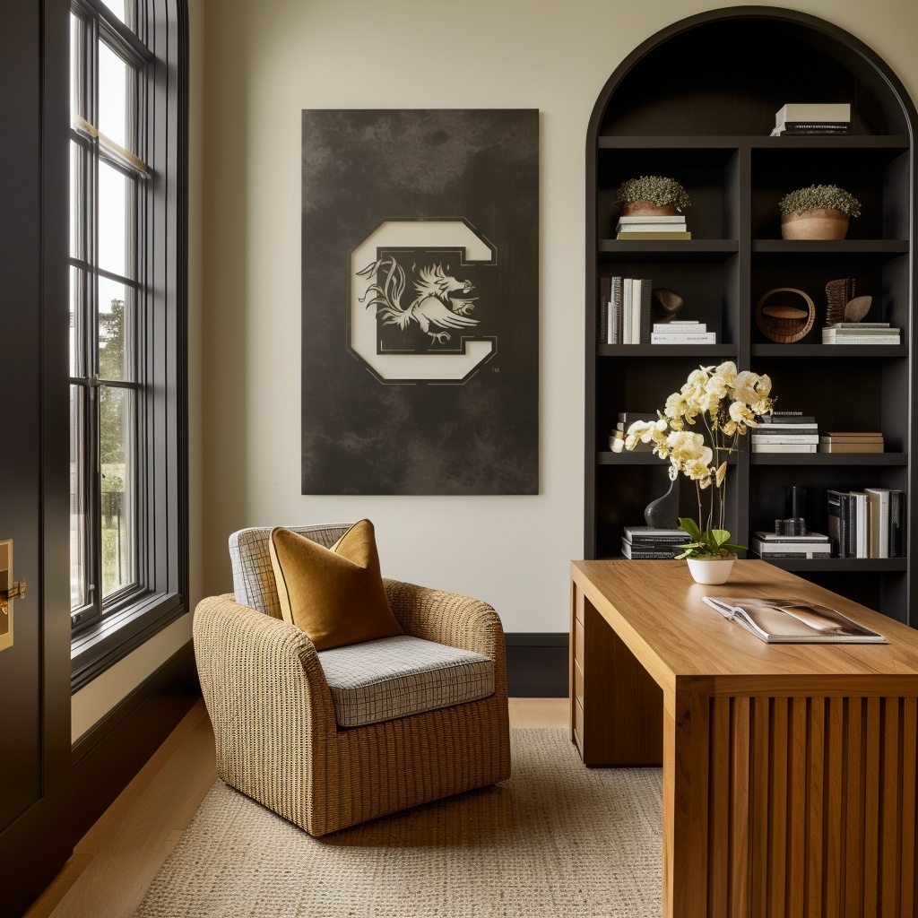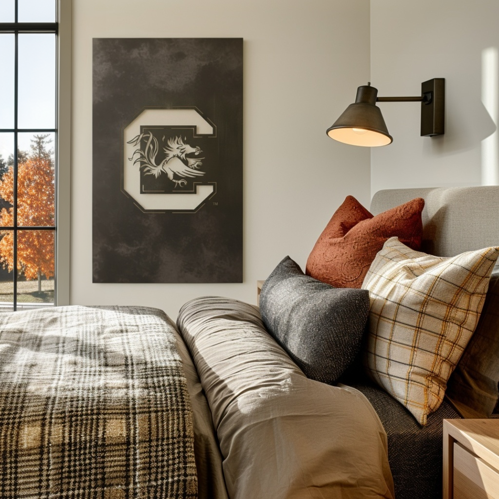The fierce Gamecock charges forward within the bold, angular “C” — a silhouette that roars with tradition and fight. This official mark of South Carolina athletics is transformed in raw steel, capturing the grit, pride, and legacy of Columbia’s finest. A striking tribute to loyal fans and lasting rivalries.
