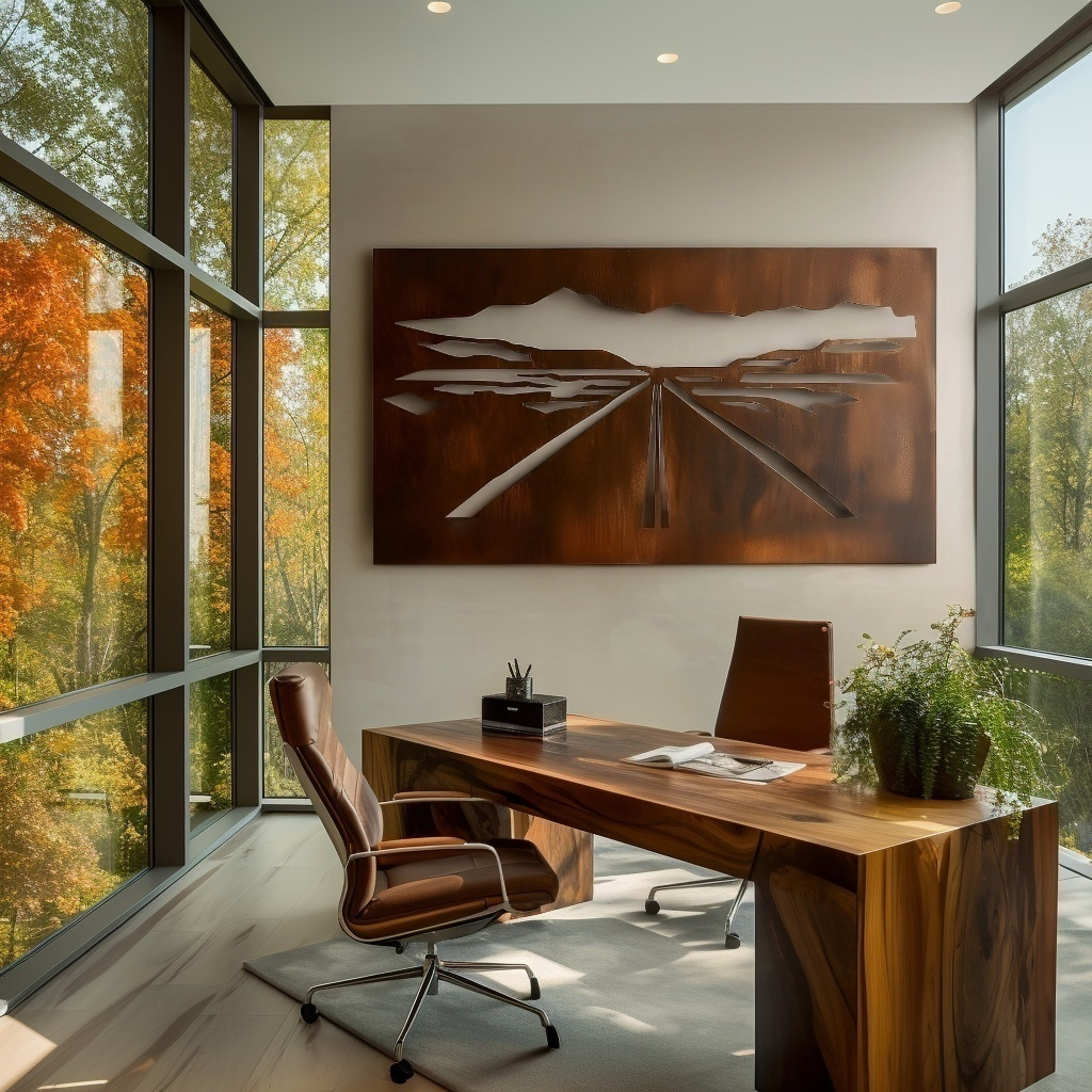 Each piece is crafted from solid 14-gauge American steel and precision cut for clean, lasting lines. A hand-applied patina gives every piece its own unique character. No two are exactly alike. Once finished, the piece is sealed for long-term durability.