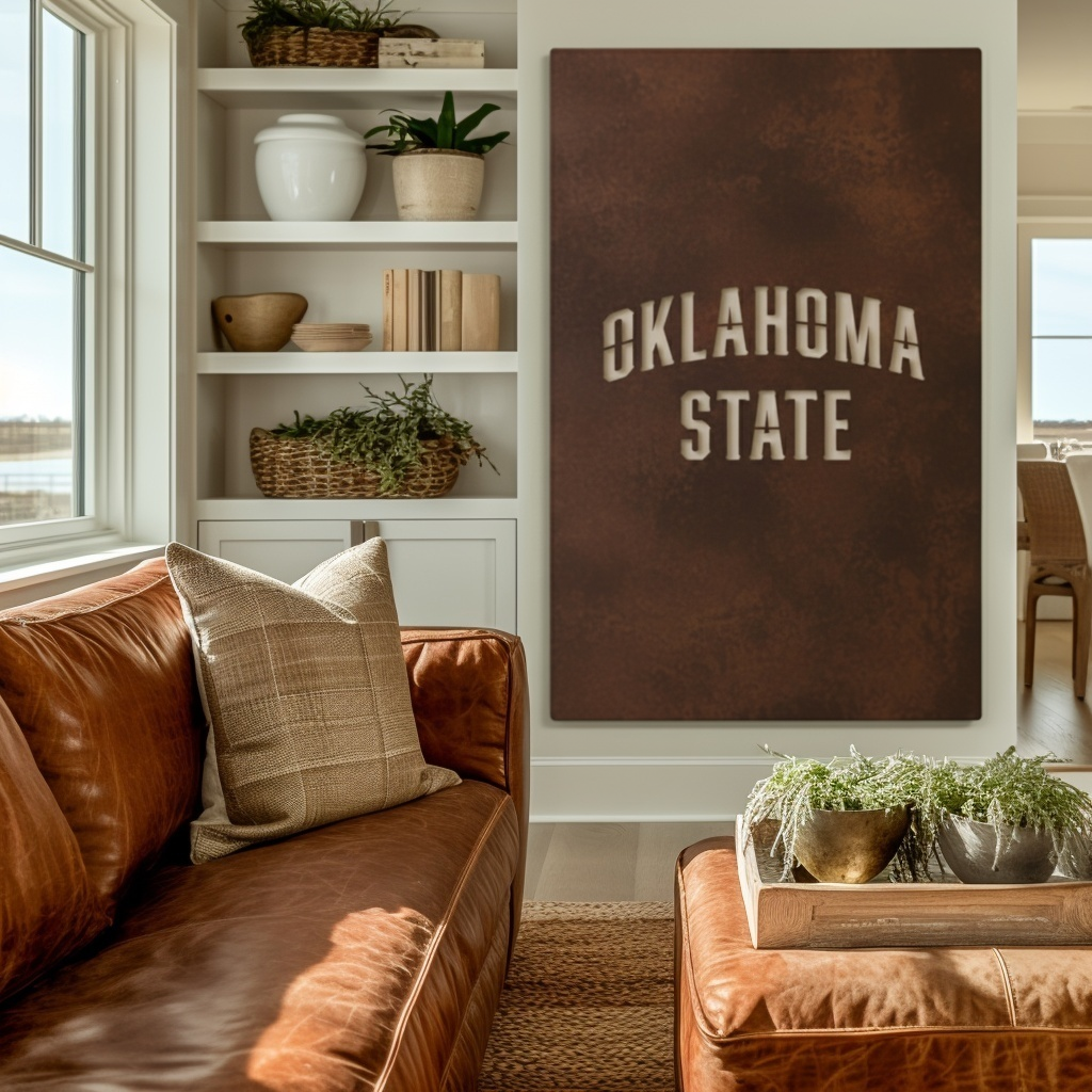 Each piece is crafted from solid 14-gauge American steel and precision cut for clean, lasting lines. A hand-applied patina gives every piece its own unique character. No two are exactly alike. Once finished, the piece is sealed for long-term durability.