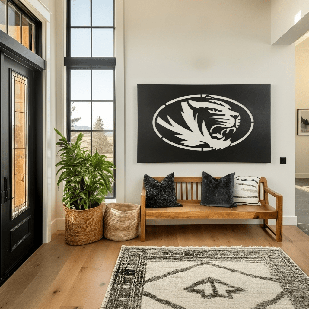 Each piece is crafted from solid 14-gauge American steel and precision cut for clean, lasting lines. A hand-applied patina gives every piece its own unique character. No two are exactly alike. Once finished, the piece is sealed for long-term durability.