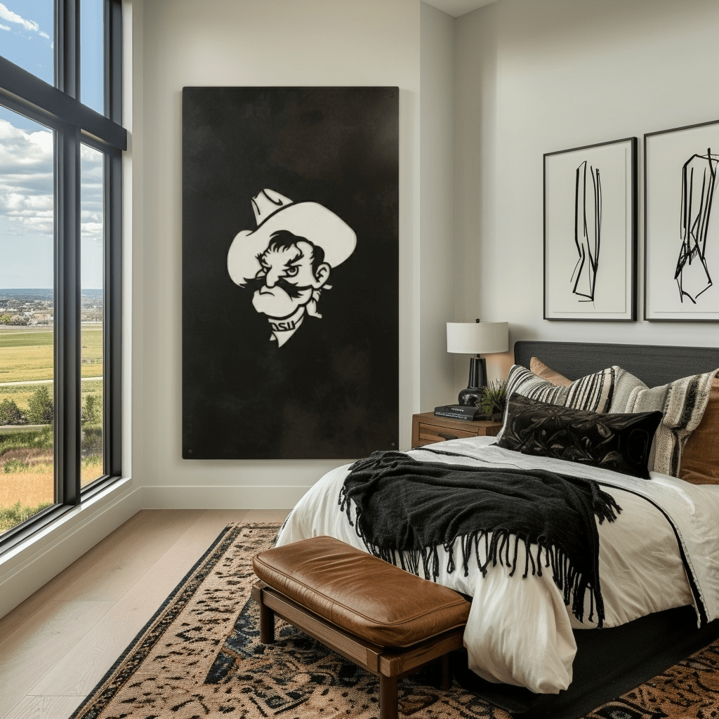 Each piece is crafted from solid 14-gauge American steel and precision cut for clean, lasting lines. A hand-applied patina gives every piece its own unique character. No two are exactly alike. Once finished, the piece is sealed for long-term durability.