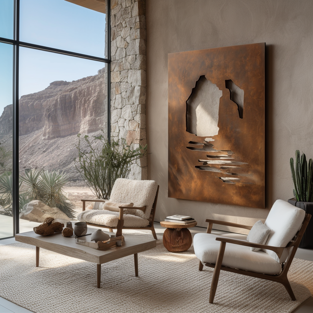 Each piece is crafted from solid 14-gauge American steel and precision cut for clean, lasting lines. A hand-applied patina gives every piece its own unique character. No two are exactly alike. Once finished, the piece is sealed for long-term durability.