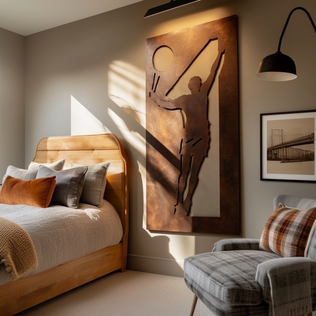 A dynamic silhouette frozen at full extension, The Serve captures the precision and energy of a perfect tennis serve. Cut from warm, patinaed steel, it brings movement and athleticism to any space.