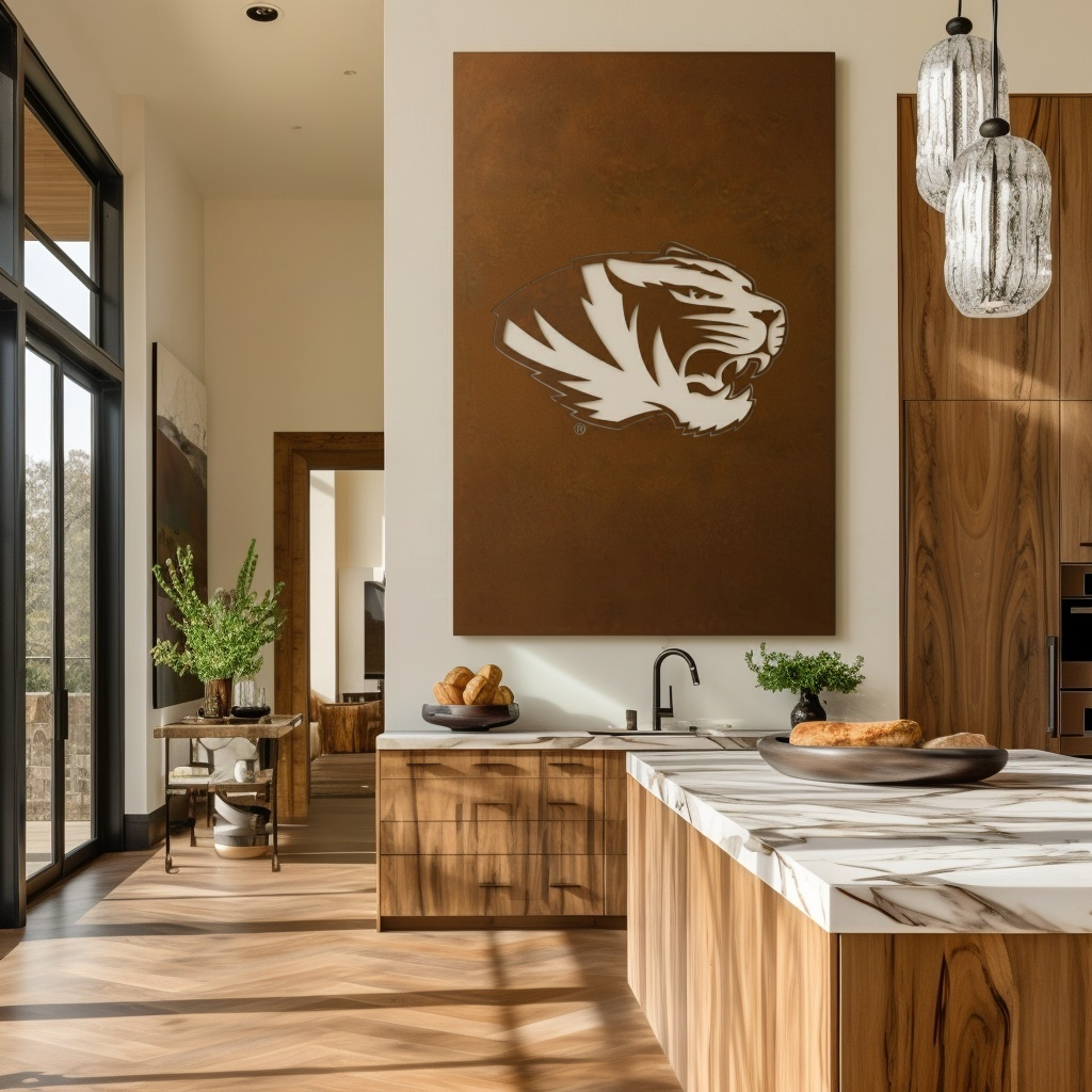 Showcase your Tiger pride with this striking metal wall art featuring the University of Missouri’s iconic tiger logo. Crafted from durable steel with precision detailing, it’s a bold centerpiece for any fan’s home, office, or game-day space.