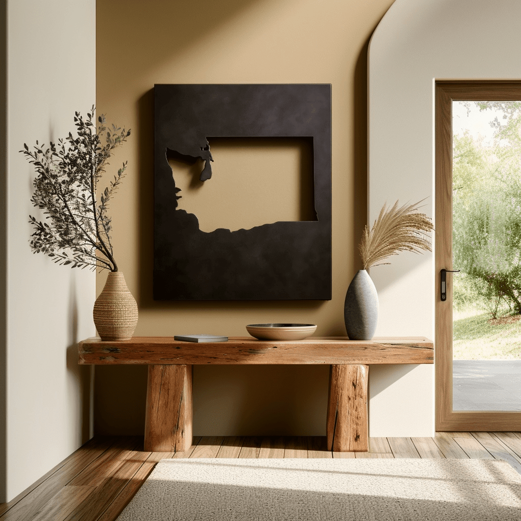 The Washington captures the rugged outline of the Pacific Northwest, echoing mountain ridges, misty coastlines, and evergreen horizons. Its clean, open form celebrates a state defined by wild beauty and enduring spirit, offering a sculptural nod to both wilderness and modern craftsmanship.