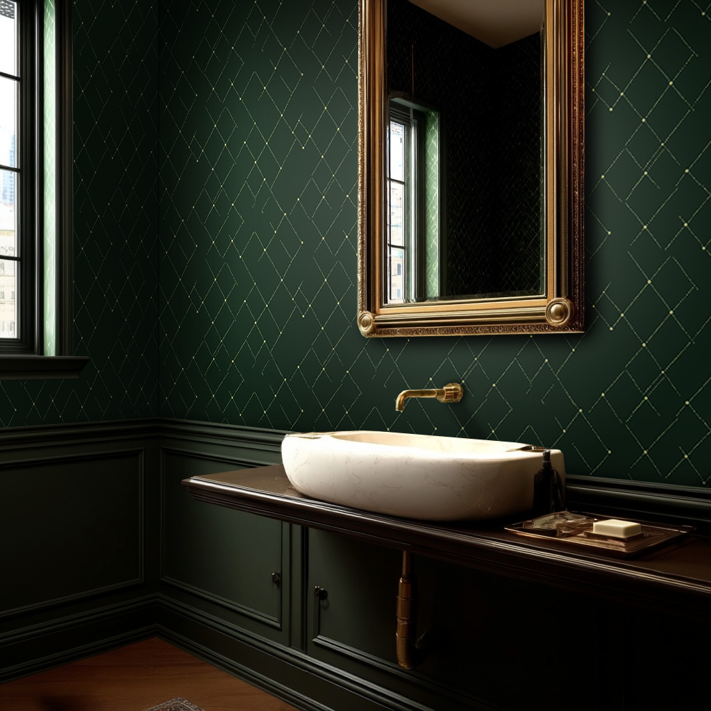 Westminster is a tailored geometric wallpaper featuring a stitched diamond motif on a deep, saturated ground. The subtle dotted detailing adds dimension and craftsmanship, giving the pattern a refined yet understated edge. Perfect for studies, dining rooms, or lounges, Westminster brings a sense of sophistication and quiet confidence to any space.
